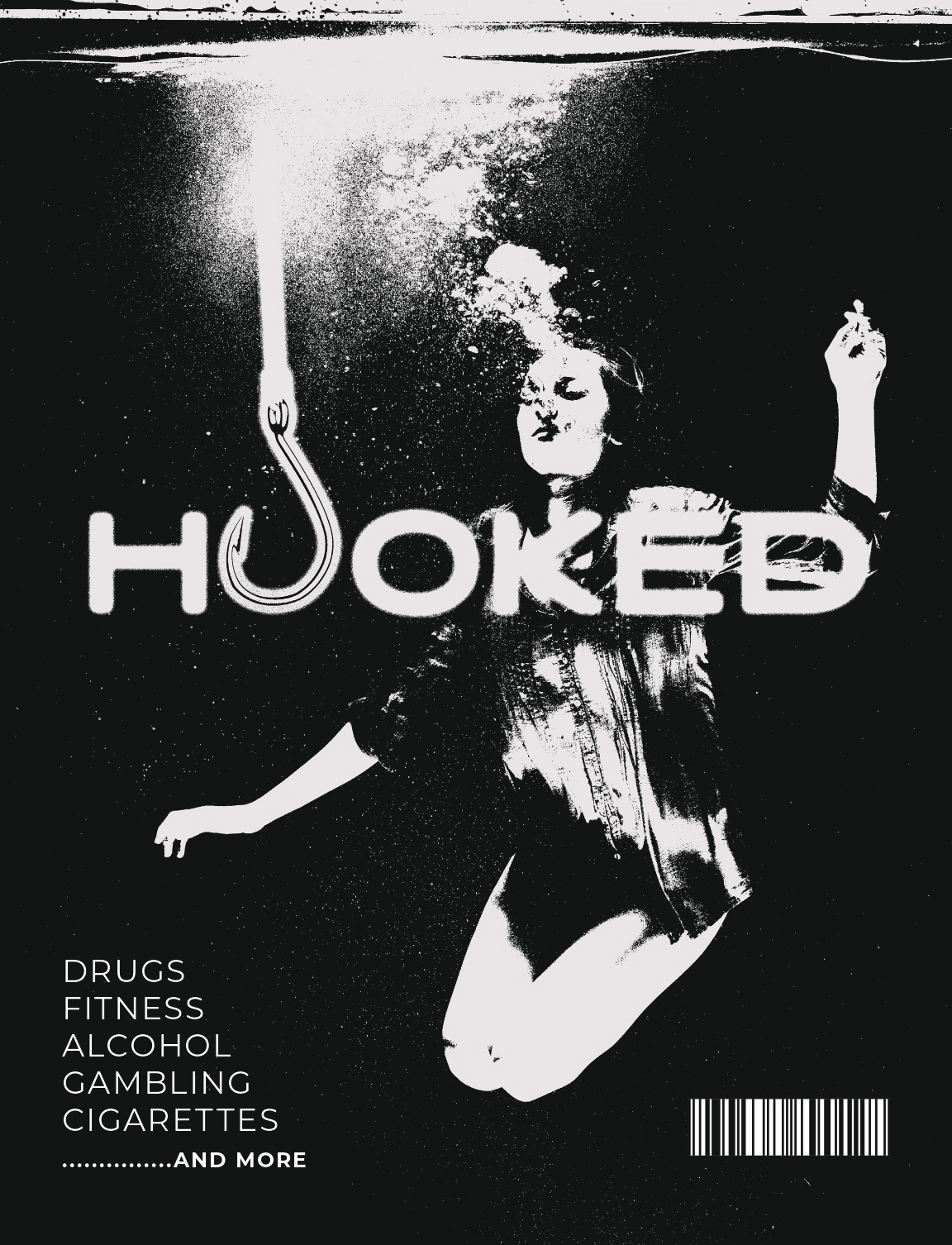 "Hooked" was a magazine created in the course "Visual Communication" at Jönköping University. The magazine was created as a group effort concerning the topic of addictions, from drug addictions to hoarding. Two spreads + the cover art were designed and created by me.
